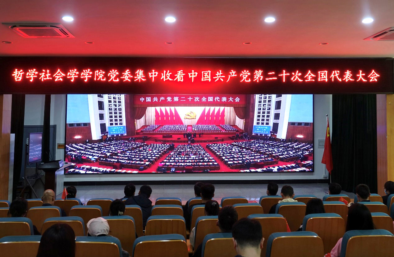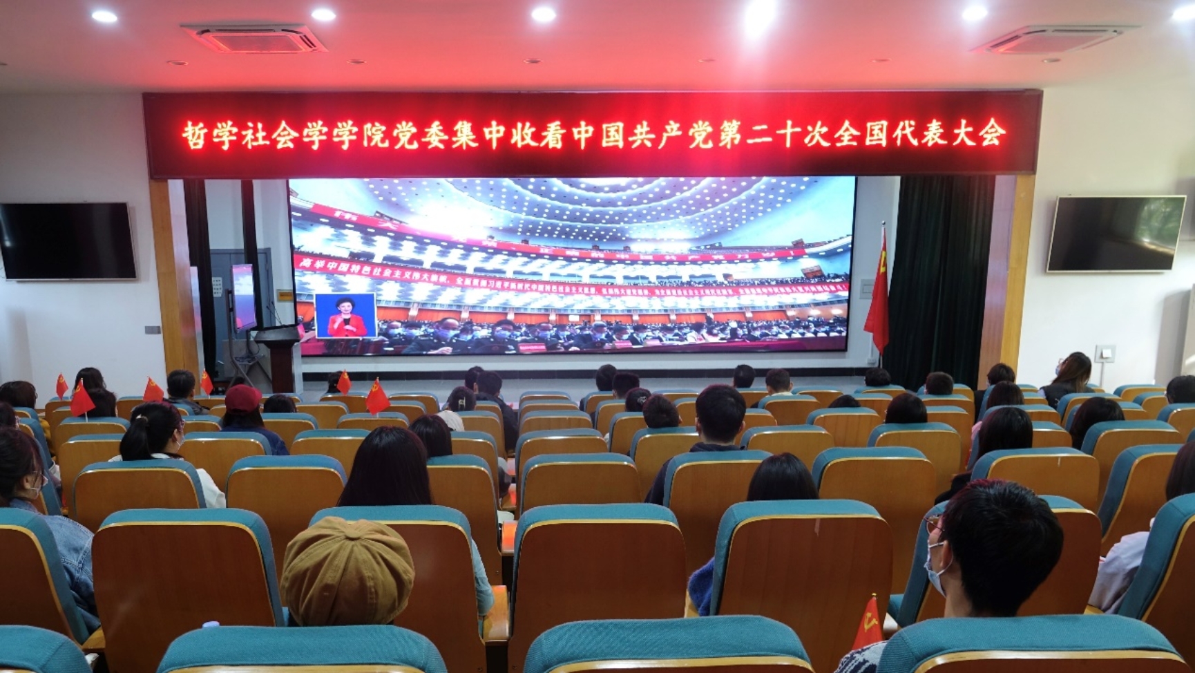 10月16日,哲学社会学公司党委在学院报告厅集中收看中国共产党第二十次全国代表大会开幕会,公司党委委员、处级及科级干部、师生党支部书记及部分党员参会。