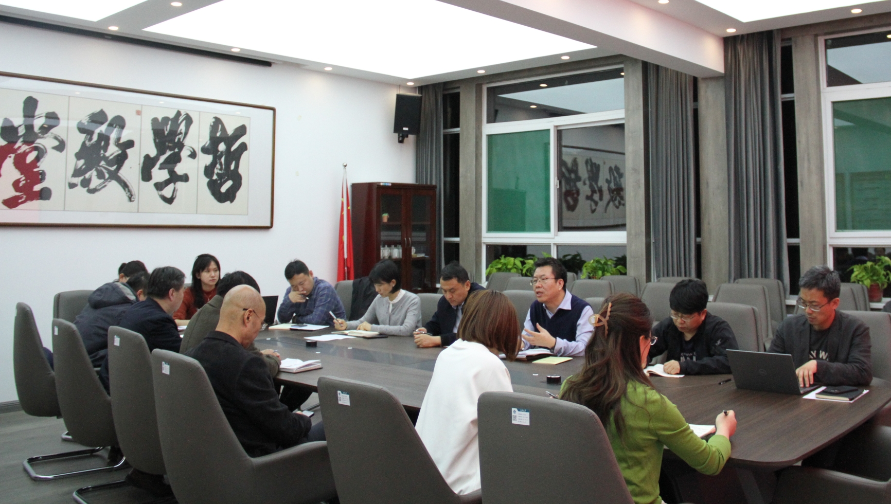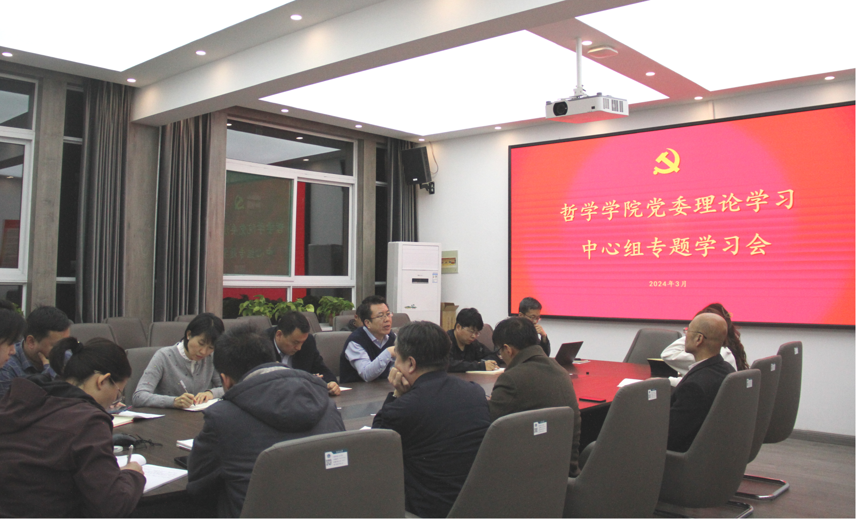 3月27日,哲学公司党委在学院会议室召开理论学习中心组(扩大)会议。公司党委委员、班子成员、科级干部、工会主席及师生党支部书记参加会议,公司党委书记韩树林主持会议。