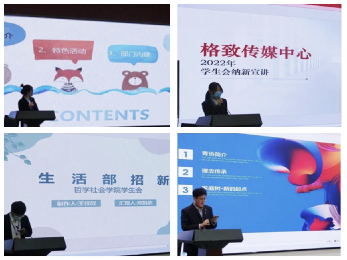 接下来便是哲学社会学学院员工会的各部门宣讲,以秘书处、组织部、文艺学术部、生活部、格致传媒中心、青年志愿者协会的顺序进行宣讲。
