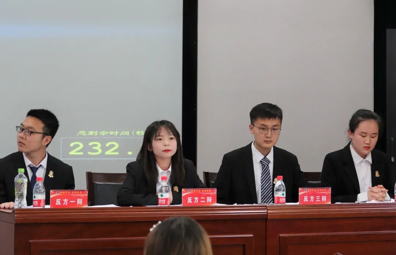 反方为法学院辩论队,他们所持的观点为“不可重来是人生的可悲”。