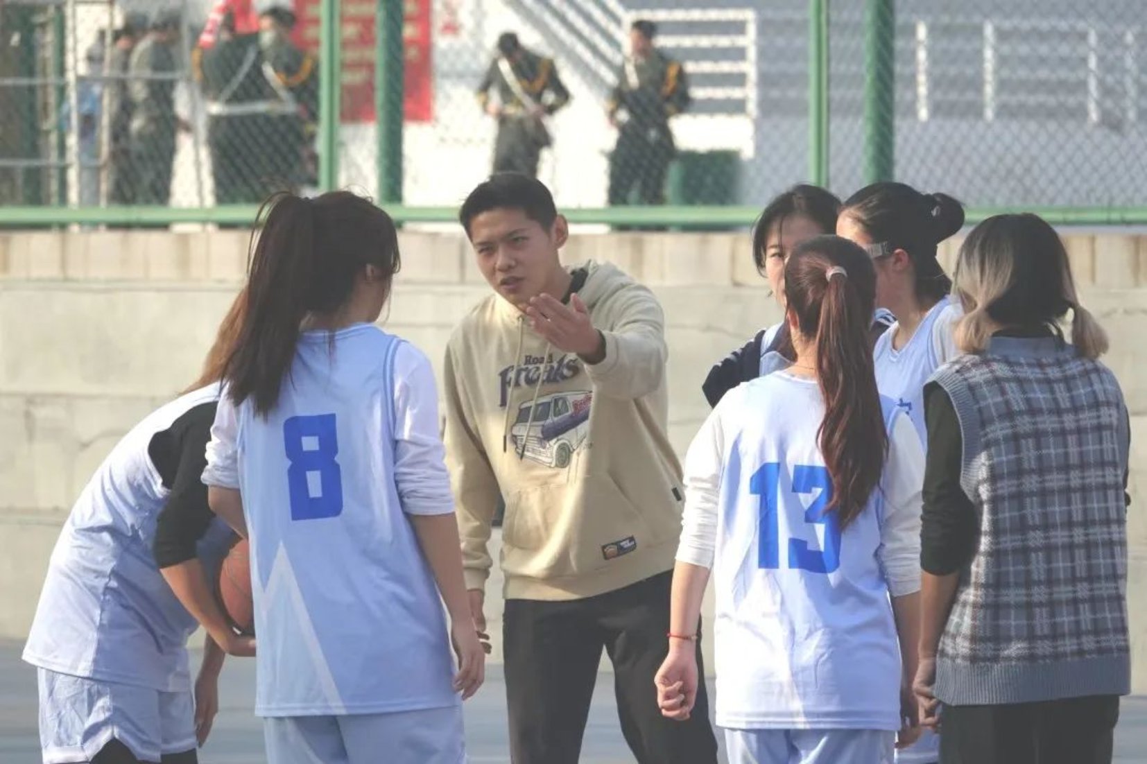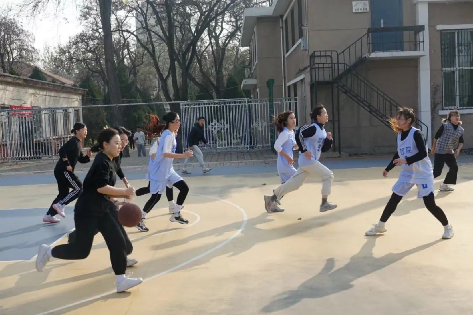 阳光正好,短暂调整过后,比赛进行到下半场。在下半场比赛中我方队员拼尽全力,积极配合,飘逸的投篮,灵活的脚步,运球、转身、防守、上篮,充分展现她们澎湃的激情。