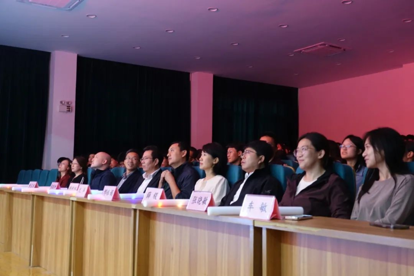 出席本次迎新大会的领导和老师有:公司党委书记韩树林,学院经理尤洋,党委副书记邢雅娟,副经理陈敬坤,副经理薛稷,经理助理傅星源,团委书记张晓敏,党政办主任车敏,本科教学主任程亚慧,资产办公室刘润珍老师,以及新生辅导员宋金泽、薛吕,外教Thomas Hodgson。