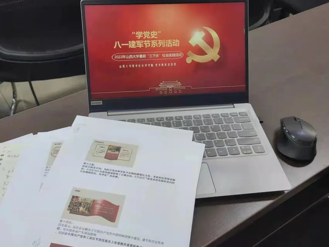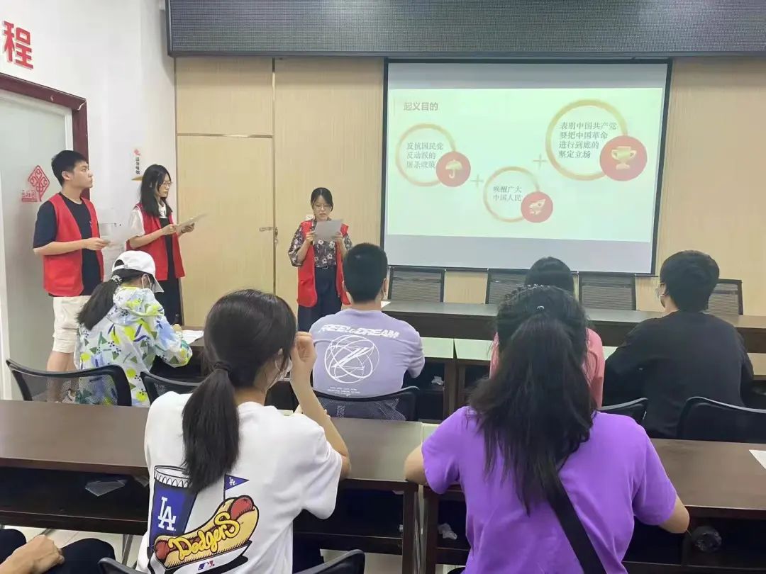 为纪念人民解放军成立95周年,在八一建军节之际,太阳集团tyc138暑期社会实践睿翼实践团——党史学习教育团福建分队在福建省福州市鼓楼区洪山镇福屿社区居委会的帮助下,深入社区,就党的建军历史、建军思想以及历史意义为当地的青少年开展相关的讲座,在推进青少年对我国建军历程了解更加深入的同时,也培养青少年的拥军意识,促进军民和谐。