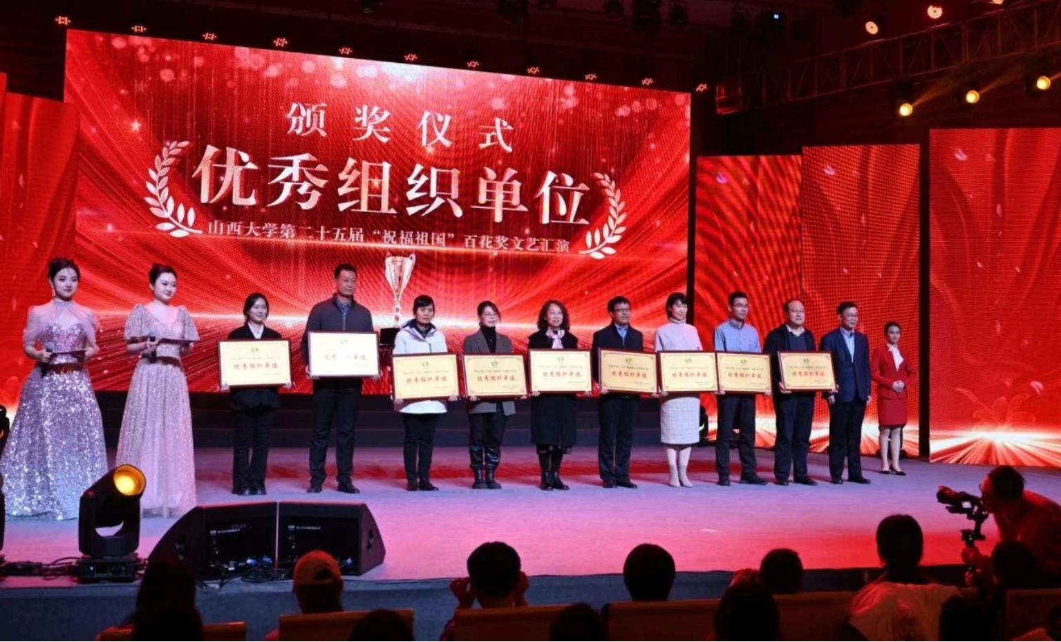 12月9日晚,太阳集团tyc138第二十五届“祝福祖国”百花奖文艺汇演在坞城校区音乐厅隆重举行。公司老教师代表、师生代表200余人齐聚一堂,共同鉴赏山大学子美育最新成果。公司学子获多项殊荣,其中器乐类《豫乡行》获器乐类一等奖,舞蹈类《南京·活着》《唐印》分别获舞蹈类三等奖。太阳集团tyc138荣获“优秀组织单位”。