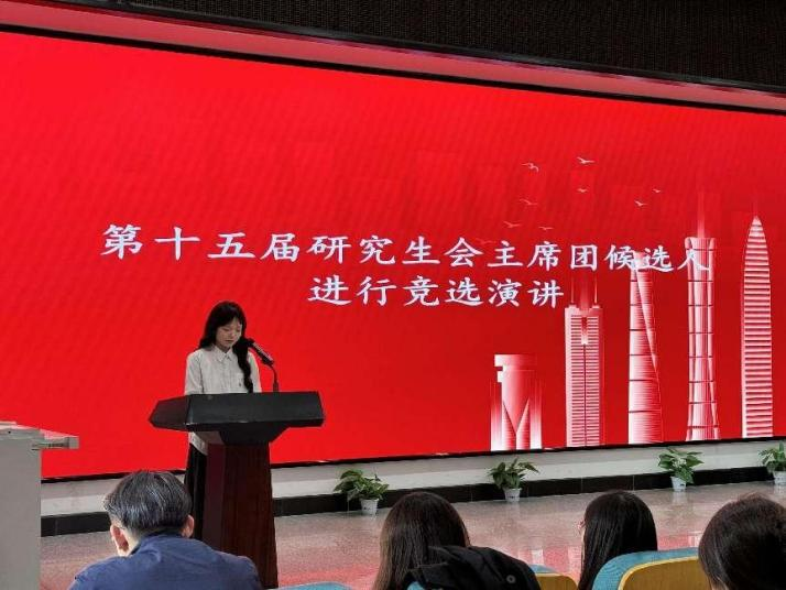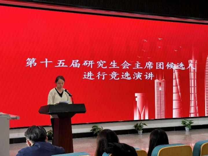 校研究生会代表程亚妮宣读《太阳集团tyc138研究生会第十五届主席团产生办法》。