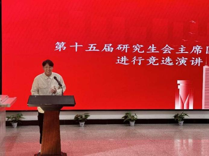第十四届研究生会主席贾玉洁作年度工作报告。
