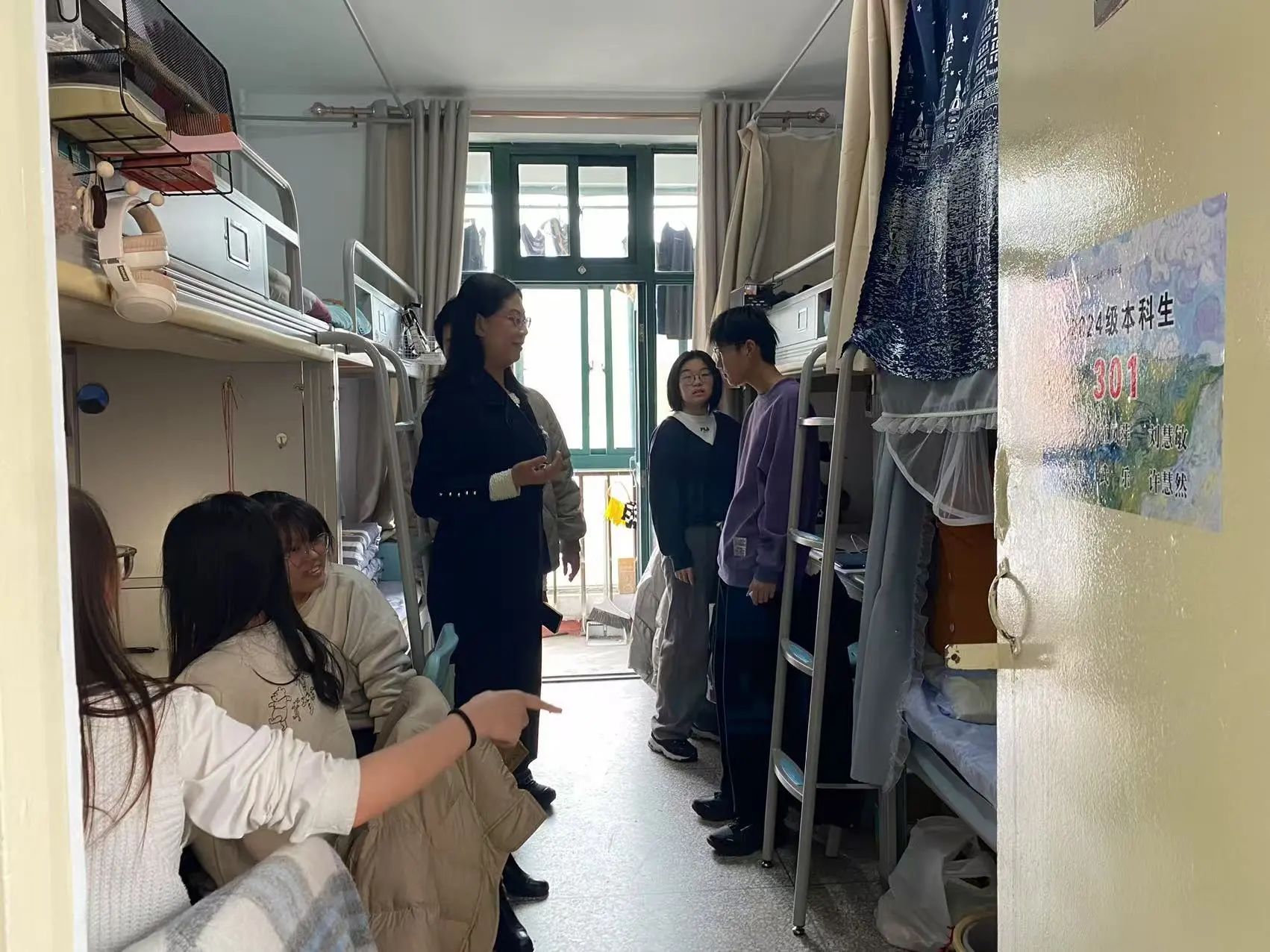 2月28日,太阳集团tyc138学院专职辅导员队伍一行来到令德一斋员工宿舍,走访看望同学,深入调研同学们关于学院员工工作、睿翼“一站式”社区服务、文体实践活动等方面的问题和意见建议,党委副书记吴鑫重点就意识形态安全、人身安全、活动安全、心理安全、校园交通安全等方面做出强调,对“一站式”社区文化建设、文明宿舍创建、宿舍文化节等工作进行了安排。