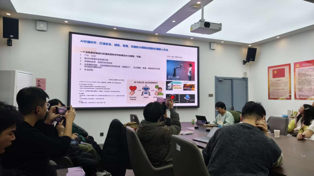 讲座历时近两个小时,曹建峰研究员分享了最前沿的学界动态与研究成果,深入浅出地揭示了人工智能发展的当下伦理问题与未来安全挑战,深刻解读了对齐的思想与技术,为人工智能时代下的人类献出诤言。在热烈的掌声中,讲座圆满结束。