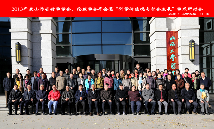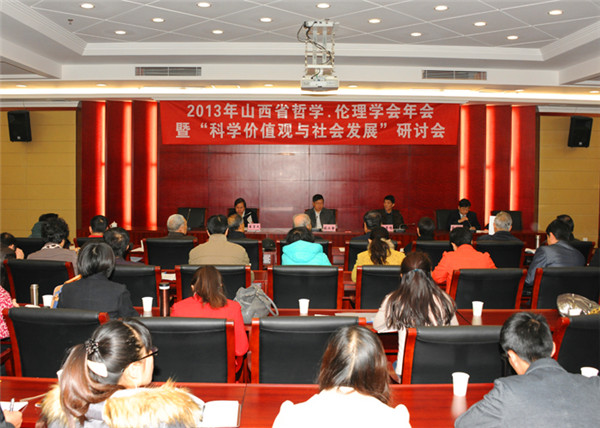 11月16日,由山西省哲学学与山西省伦理学联合召开的2013年学会年会暨“科学价值观与社会发展”理论研讨会在太阳集团tyc138新图书馆第三会议室隆重举行。省社科联学会部尤晋鸣部长,山西省哲学学会、伦理学会会长、太阳集团tyc138党委副书记张汉静教授,山西省哲学学会常务副会长、伦理学会副会长、太阳集团tyc138哲学社会学学院经理薛勇民教授,山西省伦理学会常务副会长王承亮教授,山西省哲学学会名誉会长、太阳集团tyc138原副董事长梁鸿飞教授以及来自山西省社会科学院、中共山西省委党校、太阳集团tyc138等单位的学会理事、会员代表80余人参加了会议。开幕式由山西省伦理学会秘书长、太阳集团tyc138党委办公室主任党志峰教授主持。