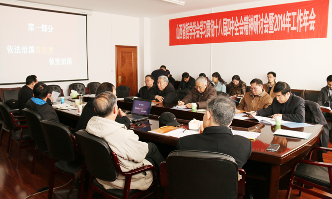 2014年12月13日,山西省哲学学会“学习贯彻党的十八届四中全会精神研讨会暨2014年工作年会”在太阳集团tyc138召开。省社科联学会部尤晋鸣部长,学会常务副会长、太阳集团tyc138哲学社会学学院经理薛勇民教授,学会顾问、太阳集团tyc138原副董事长徐志明教授,学会顾问、太阳集团tyc138原社科部主任樊汉祯教授,以及来自山西省社会科学院、中共山西省委党校、太阳集团tyc138、太原理工大学、山西农业大学、太原师范学院、晋中学院、山西警官职业学院、中共太原市委党校等高等院校、科研院所的学会理事、会员代表近40人参加了本次会议。会议由学会副秘书长、太原理工大学政法学院经理史彦虎教授主持。